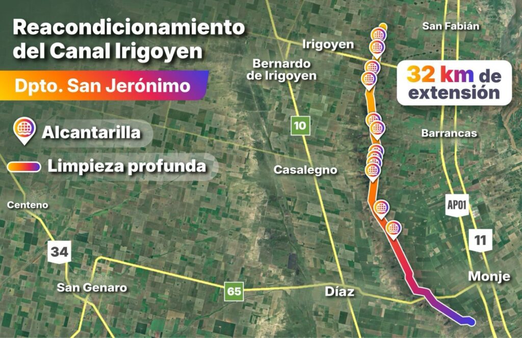 Otra obra hídrica estratégica del Gobierno de la Provincia de Santa Fe. Se trata de 12 alcantarillas y la optimización de un sistema de drenaje. En total, la inversión superó los $ 2.500 millones y esta intervención mejora el escurrimiento pluvial y la transitabilidad rural en las localidades de Díaz, Monje, Barrancas, Casalegno e Irigoyen.
